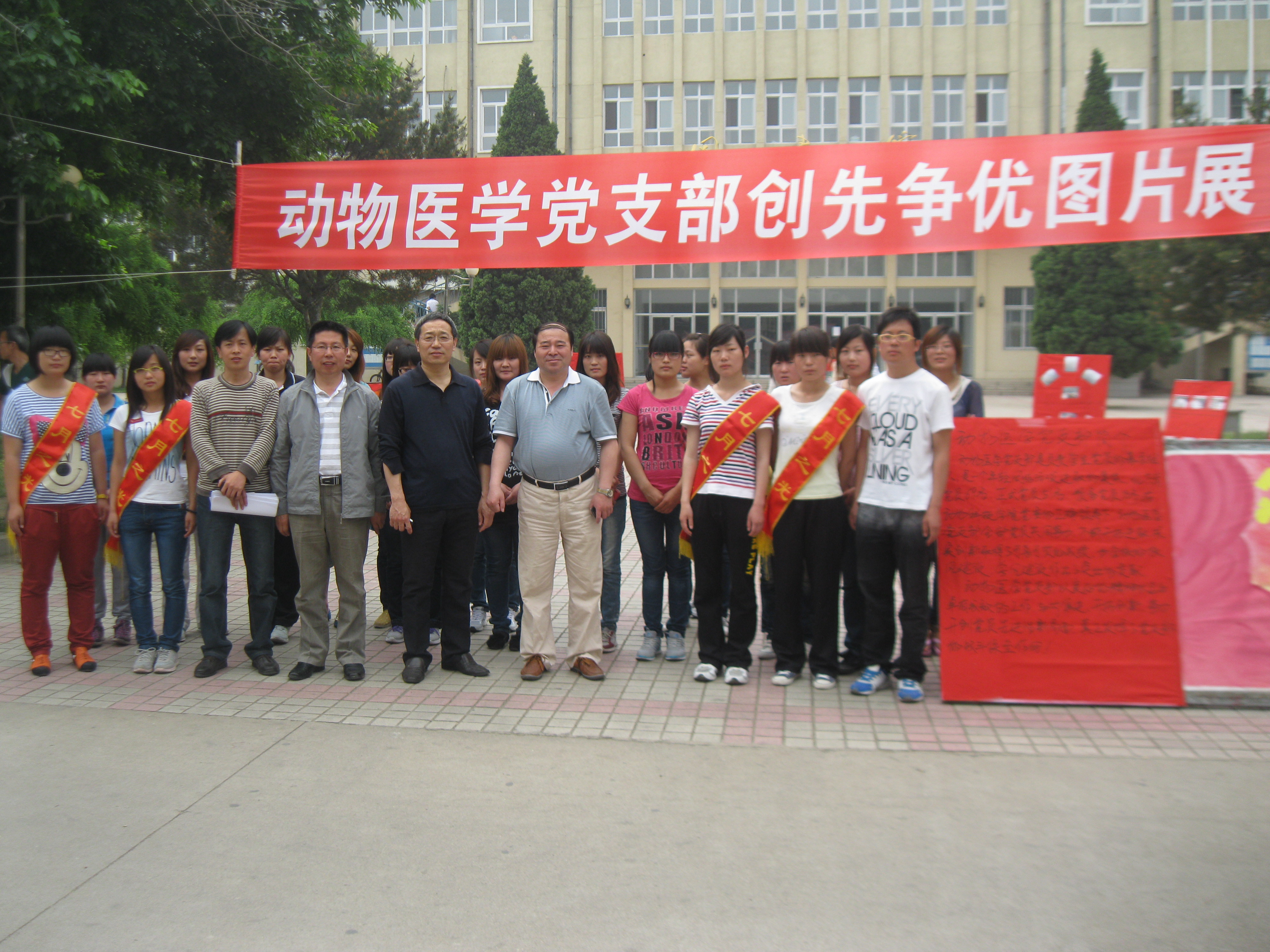 副院长杨宗泽等领导观看了图片展,动物医学党支部书记兼“七月之光”大学