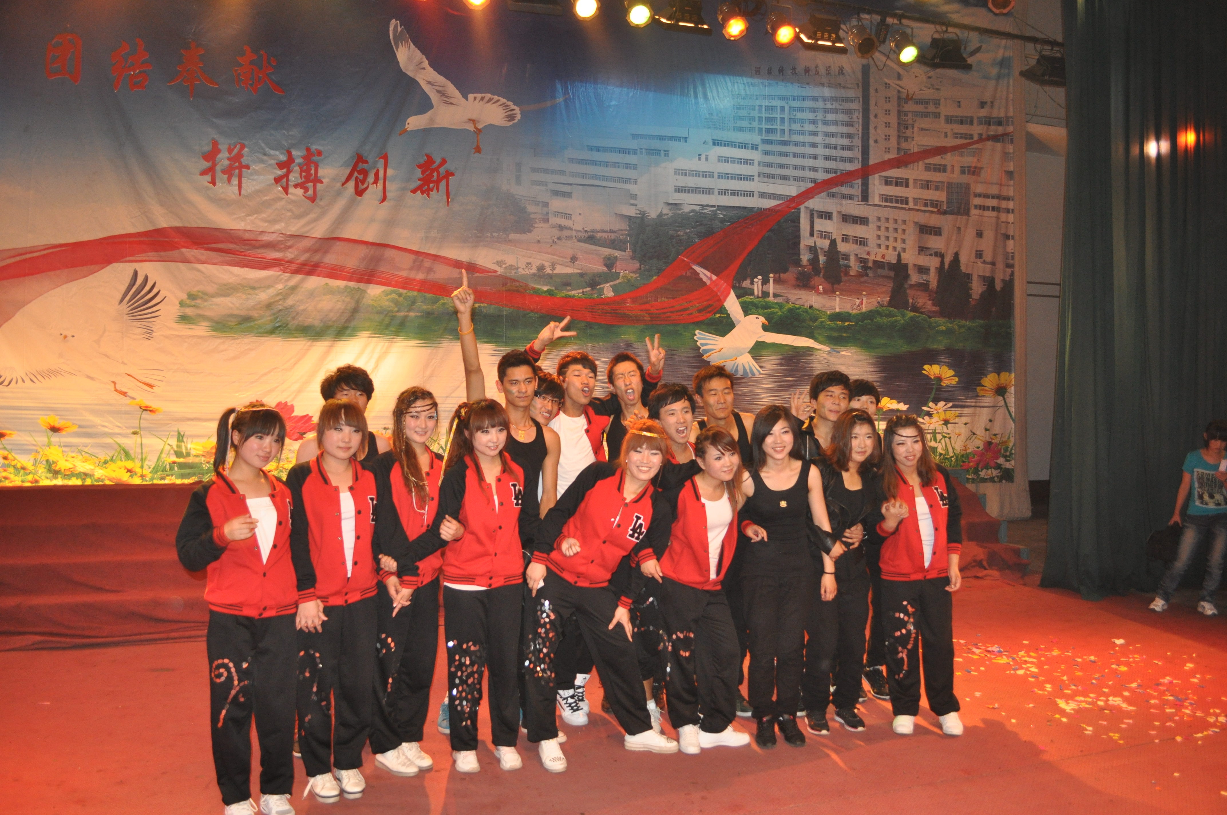 为活跃校园文化生活,浓郁学校大学生文化艺术氛围,展现当代大学生健康向上的精神风貌。我校举办了第十三届“海之韵”现代舞大赛,我院舞蹈队经过一个多月的准备,对节目精心编排,刻苦训练,首先参加了昌黎校区预赛,并以昌黎校区第二名的成绩顺利进入决赛。入围决赛后,舞蹈队对预赛中存在的不足,及时改进,且加班加点的训练,在四校区决赛中我院舞蹈队赛出了水平,最终取得第五名的好成绩,展现了院青春、激昂、积极向上精神面貌!