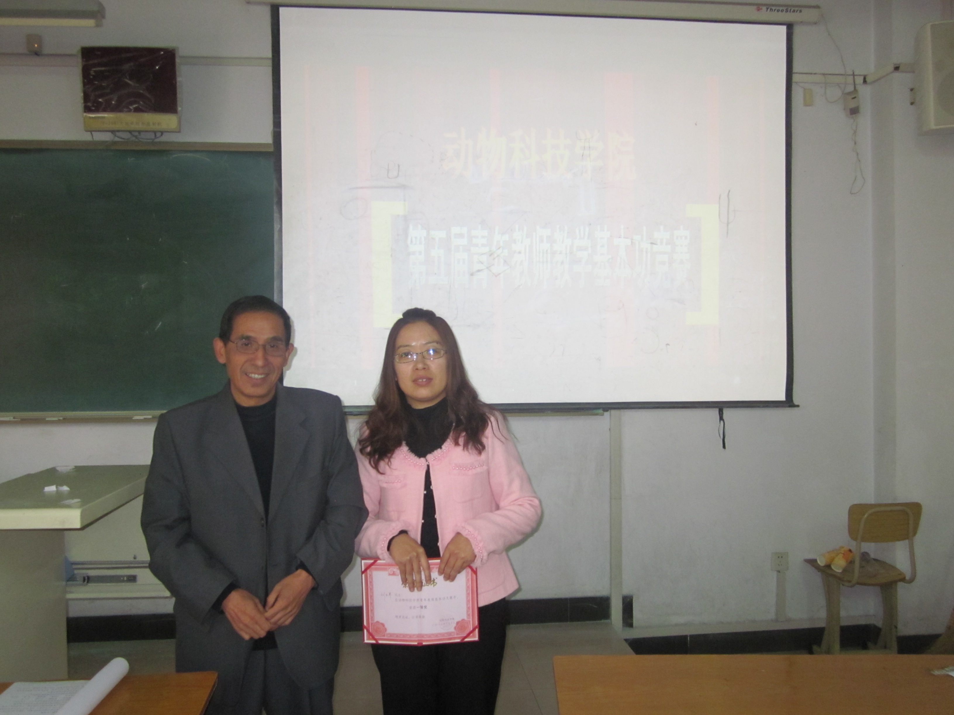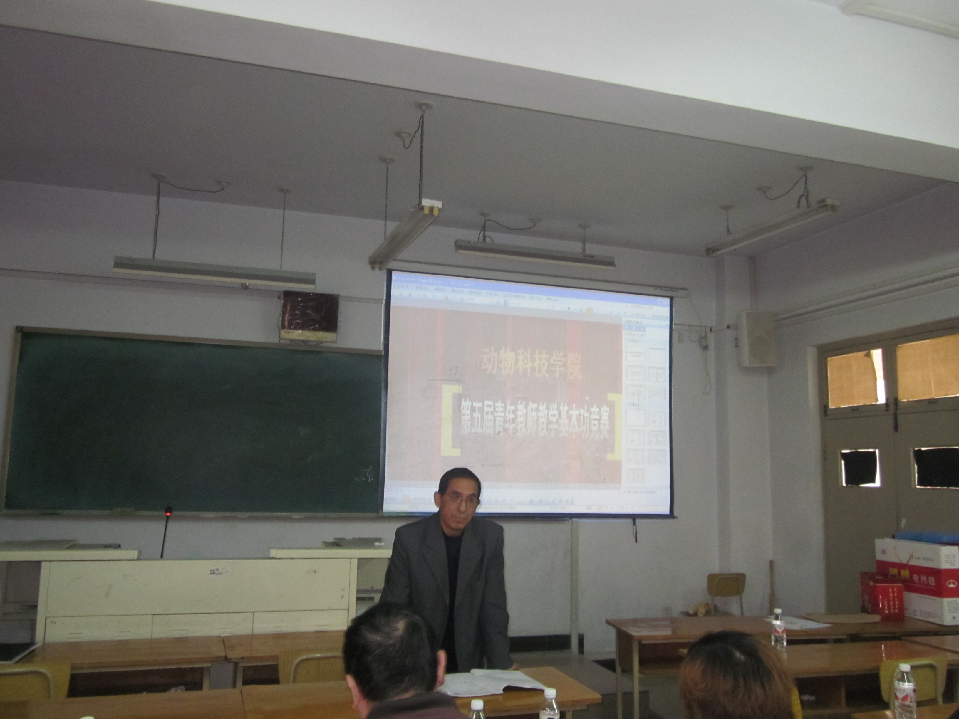 2012年10月18日下午,我院在1-C204教师举办了第五届青年教师基本功竞赛,我院全体教师观摩了本次竞赛,来自我院的8名青年教师参加了本次竞赛。担任本次竞赛的评委分别是我院党委书记段立华、副院长杨宗泽、学校督导组高山林老师、动物科学基础教学部主任张香斋老师、水产养殖教学部主任王志敏老师、动物生产实验室主任李蕴玉老师、学科带头人张文香老师。