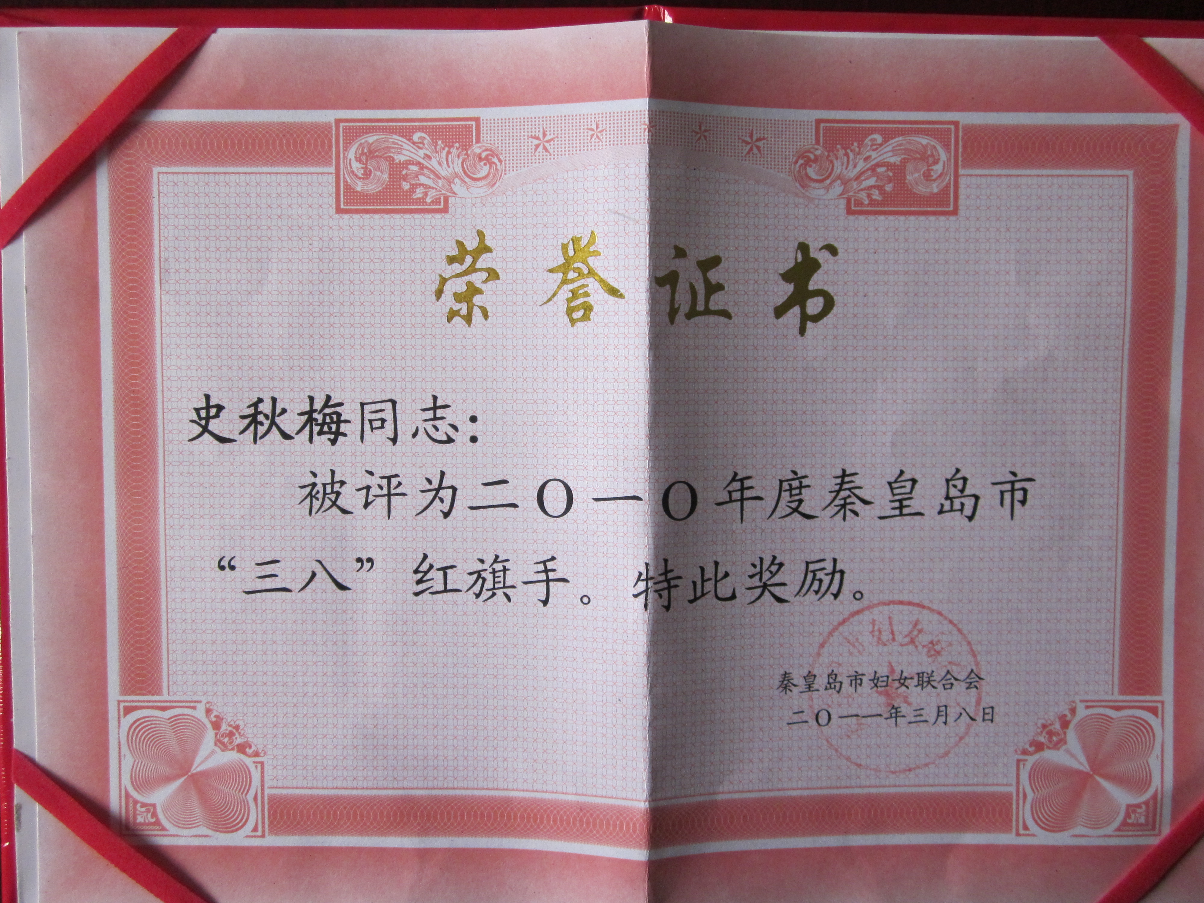 喜讯二:我院史秋梅老师被评为“2010年度秦皇岛市三八红旗手”