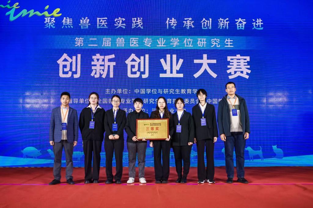 2024年11月4日至6日,第二届兽医专业学位研究生创新创业大赛在郑州举行。我院兽医专业硕士研究生刘金金、郭紫薇、王晶毅、孙莹、赵秋旖、宋乘琦等6名同学组建的“控‘蓝’有道”团队,以“猪繁殖与呼吸综合征(PRRS)RNA疫苗研发”为题参加创新组比赛,并荣获大赛团体三等奖。方玉鹏博士和刘永波博士担任大赛的指导老师。