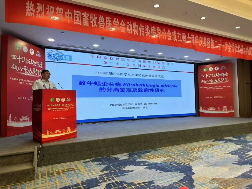 2024年10月19日至20日,由南京农业大学、中国畜牧兽医学会动物传染病学分会、军事科学院军事医学研究院军事兽医研究所联合主办的中国畜牧兽医学会动物传染病学分会成立四十周年庆典暨第二十一次全国学术研讨会(简称:大会)在江苏南京隆重开幕。